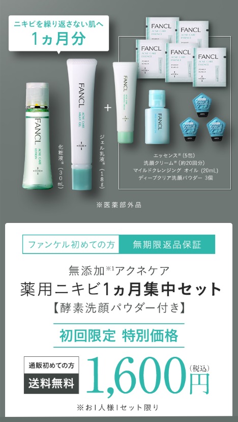 1人様1セット1回限り!「薬用集中ケアセット」がコスパ抜群の1,600円(税込)