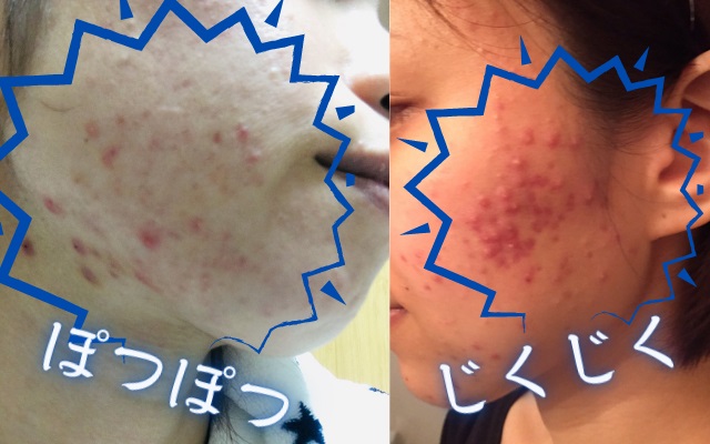 ニキビケア*2)化粧水は、軽めでさらっとしていますが肌への馴染みがよくて、敏感になった赤いニキビ肌でもふわっと優しい感触。スース―したり、ヒリヒリは一切ありませんでした!