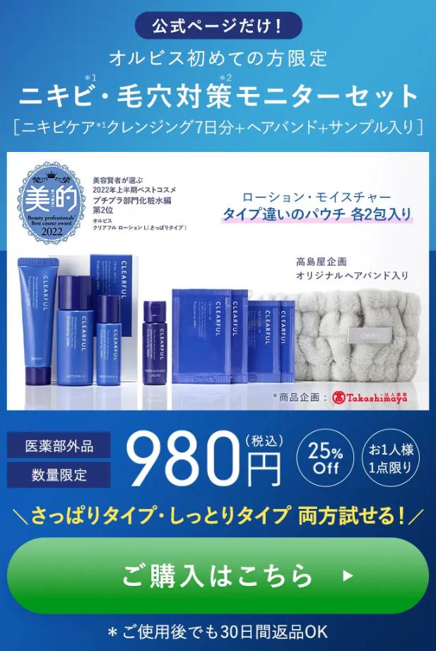 特徴 【圧倒的人気No.1】アルコール不使用・低刺激で思春期ニキビにも最適<オルビス初めての方限定> 殺菌剤不使用で思春期ニキビにおススメ。繰り返しニキビを防ぎ、つるすべ肌へ! 過剰な皮脂分泌を制御!トラブルを繰り返さない肌へ すべすべ美肌に導く化粧水・乳液 ニキビ予防+保湿ケアが高評価!